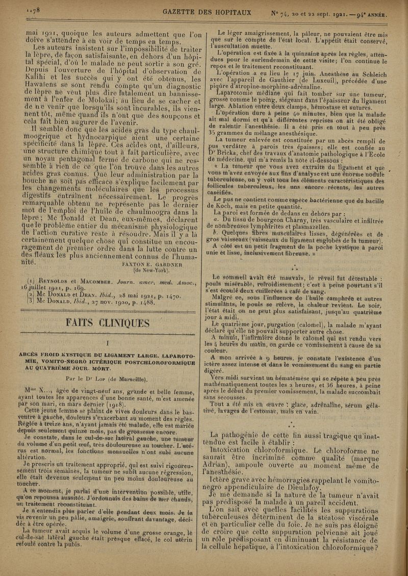 1921, tome 94e année. -