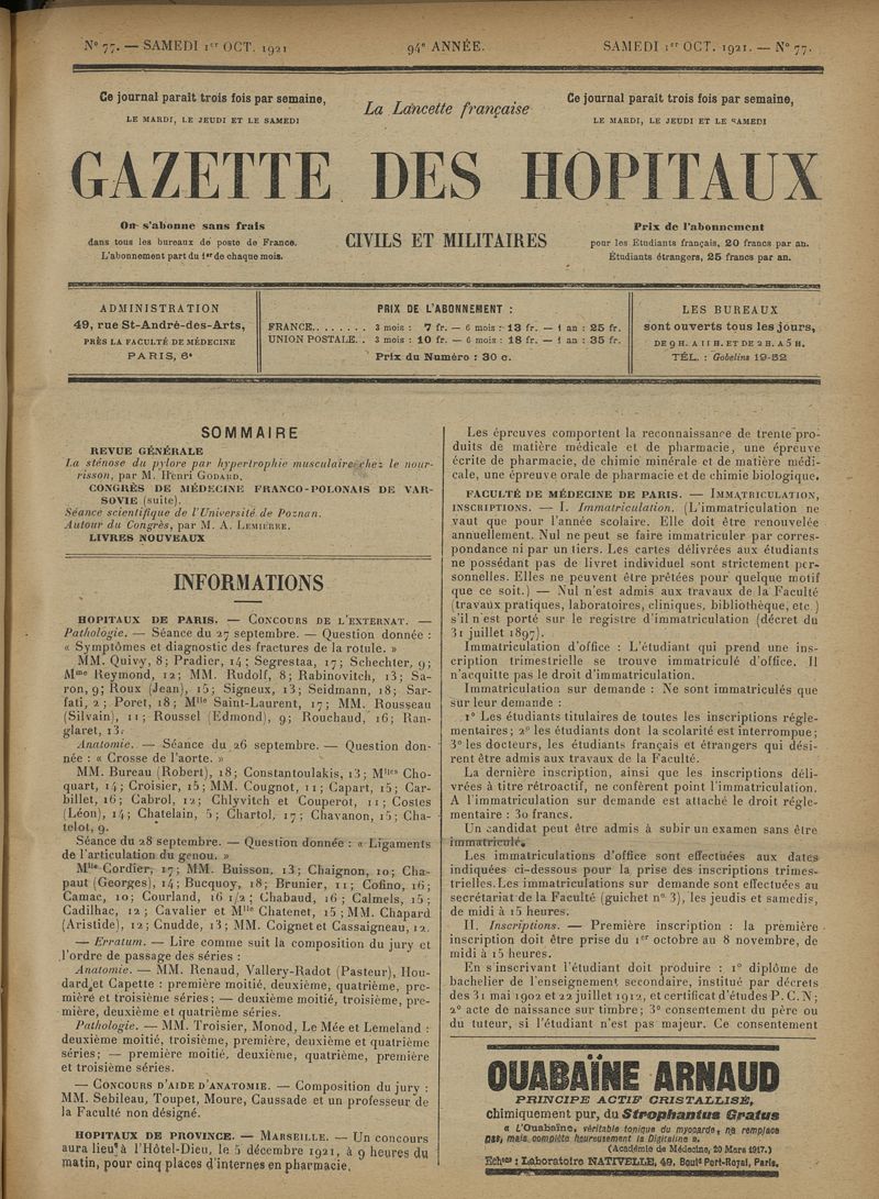 1921, tome 94e année. -
