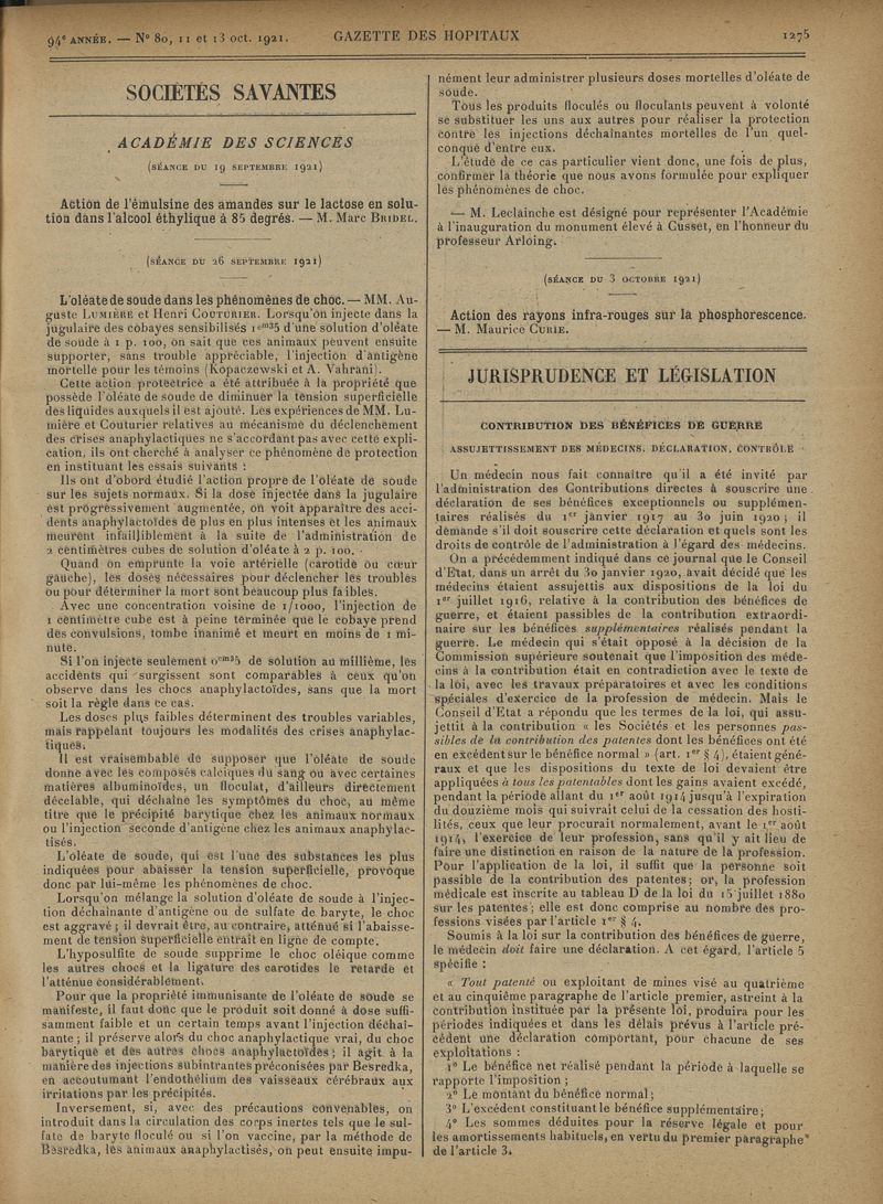 1921, tome 94e année. -