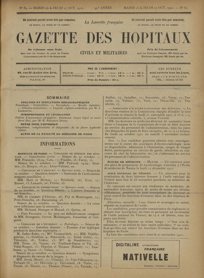 1921, tome 94e année. -