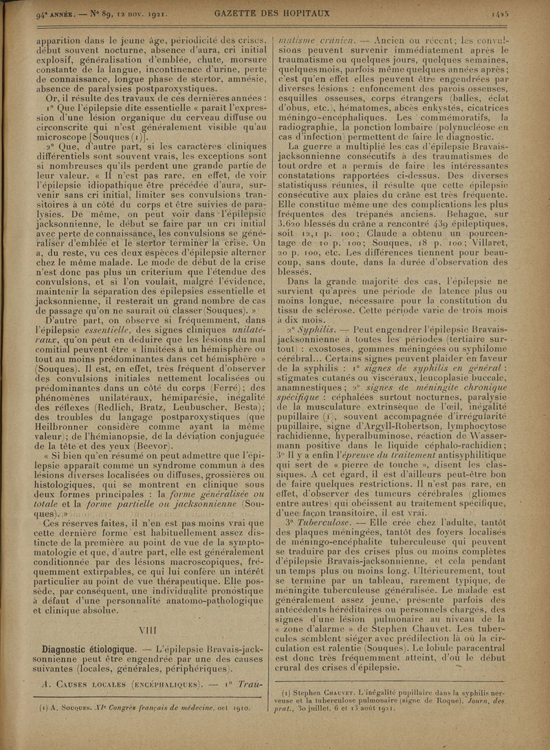 1921, tome 94e année. -