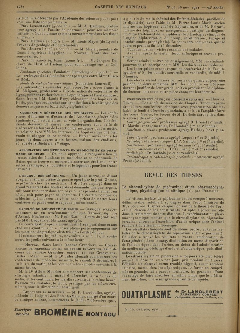 1921, tome 94e année. -