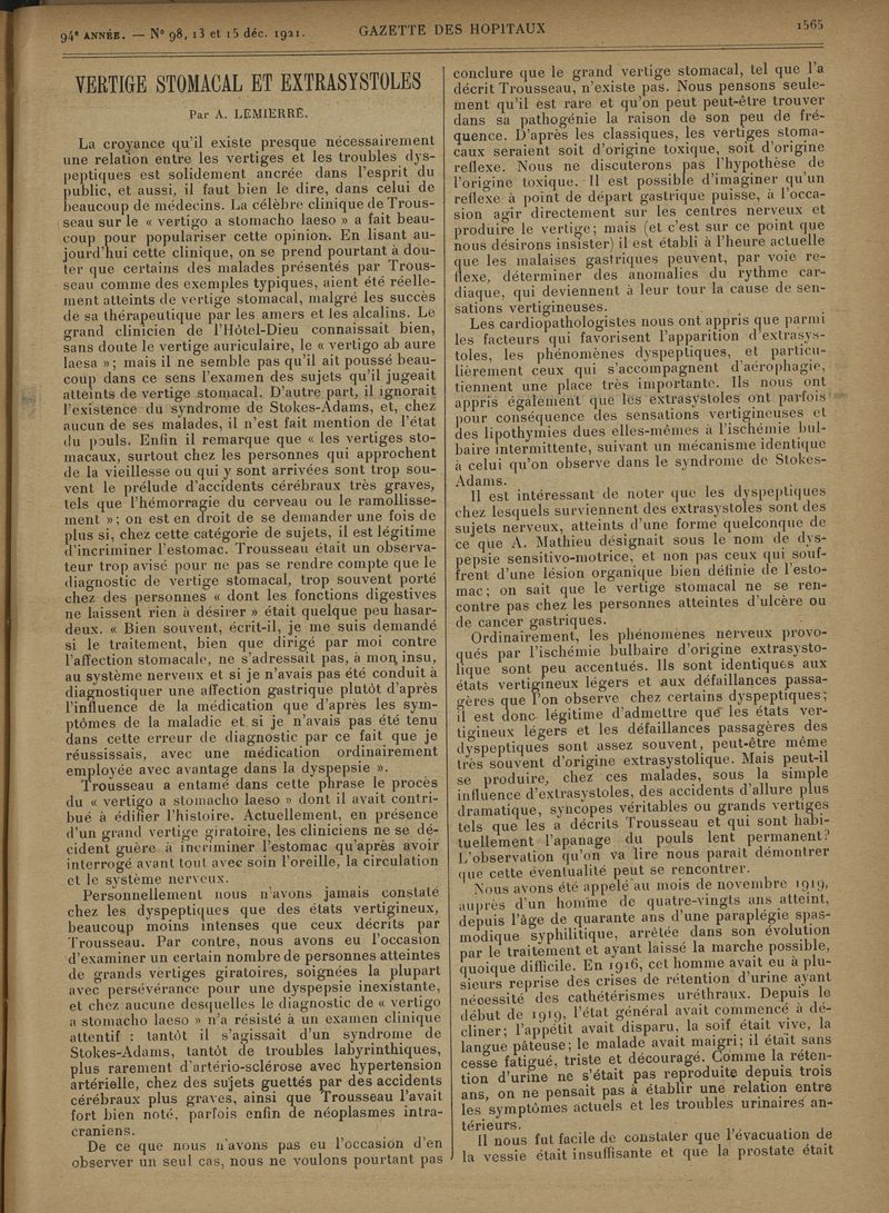 1921, tome 94e année. -