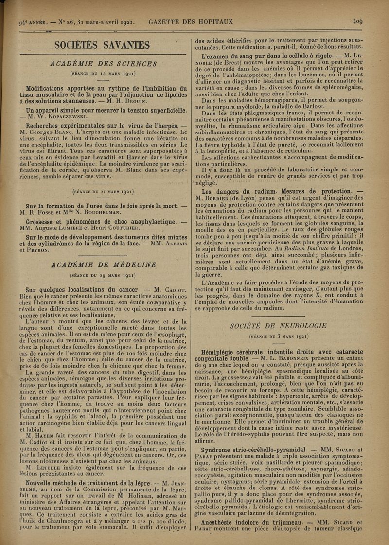 1921, tome 94e année. -