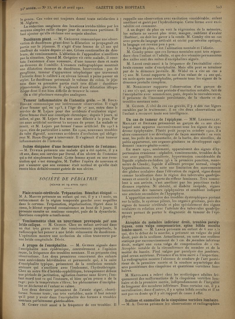 1921, tome 94e année. -