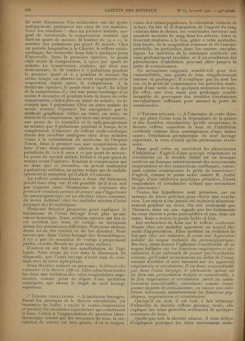 1921, tome 94e année. -