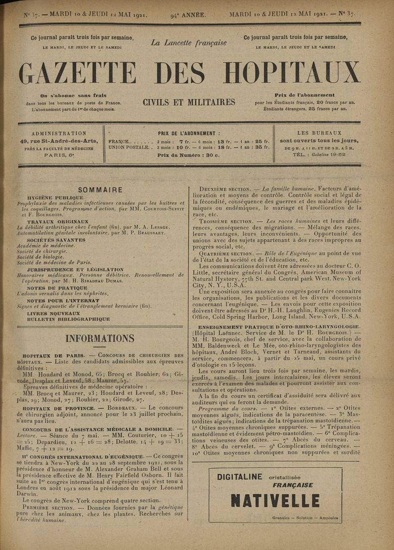 1921, tome 94e année. -
