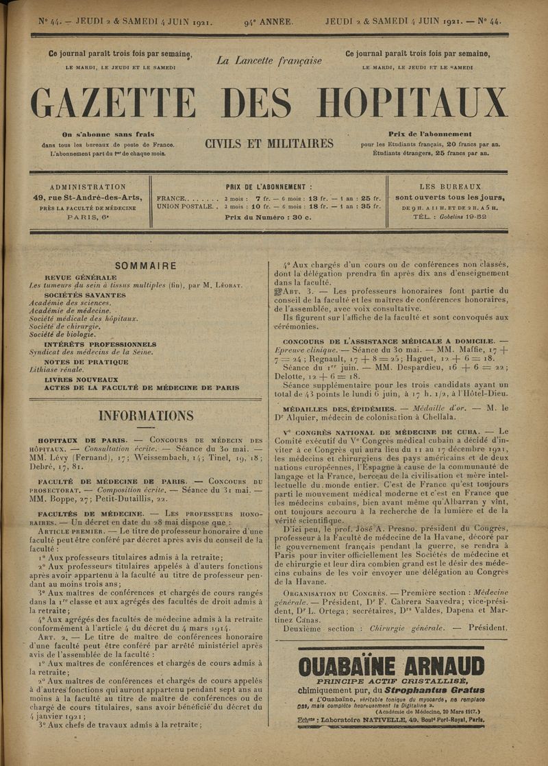 1921, tome 94e année. -