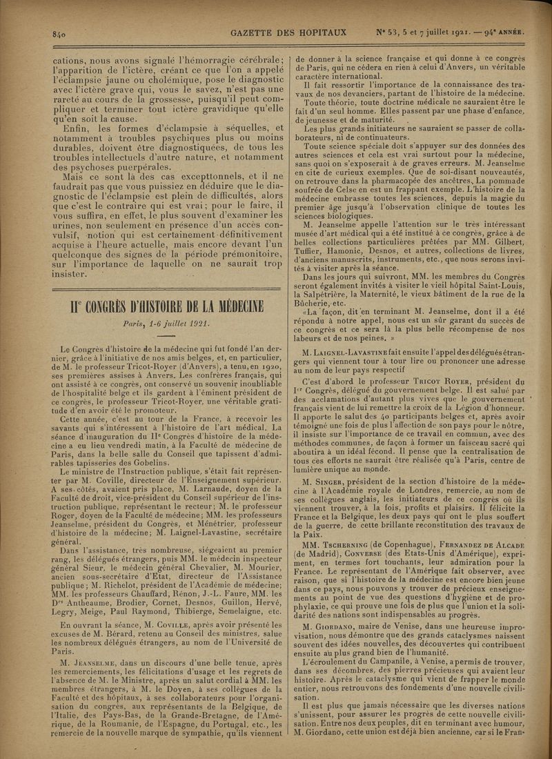 1921, tome 94e année. -