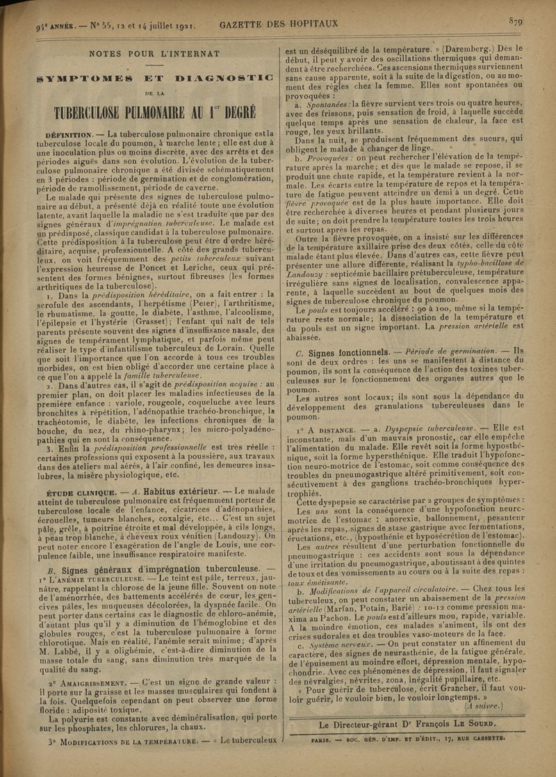 1921, tome 94e année. -