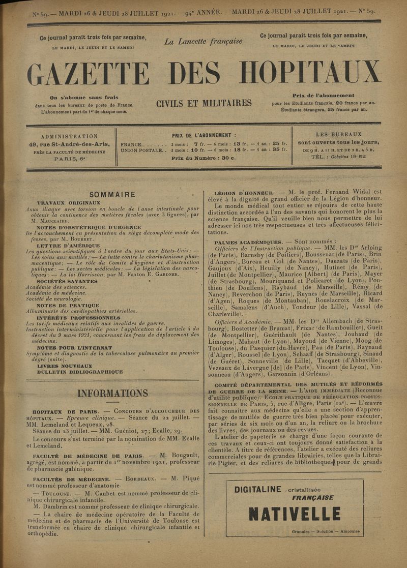 1921, tome 94e année. -