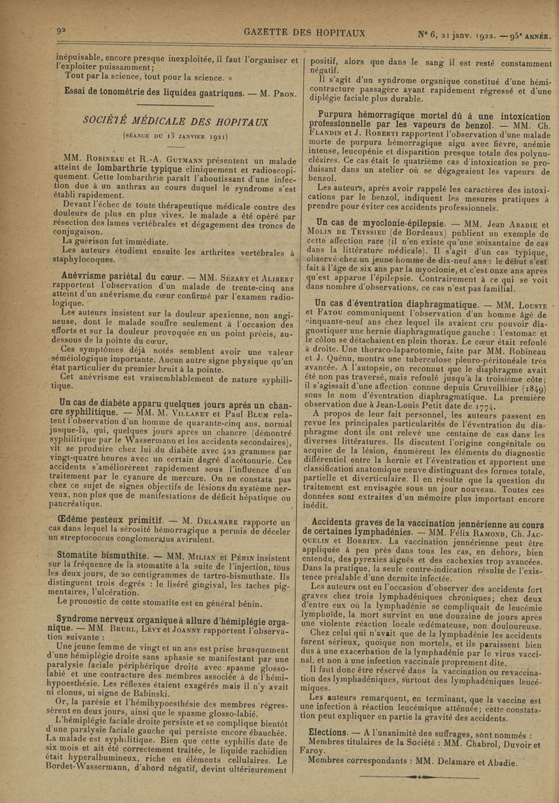 1922, tome 95e année. -
