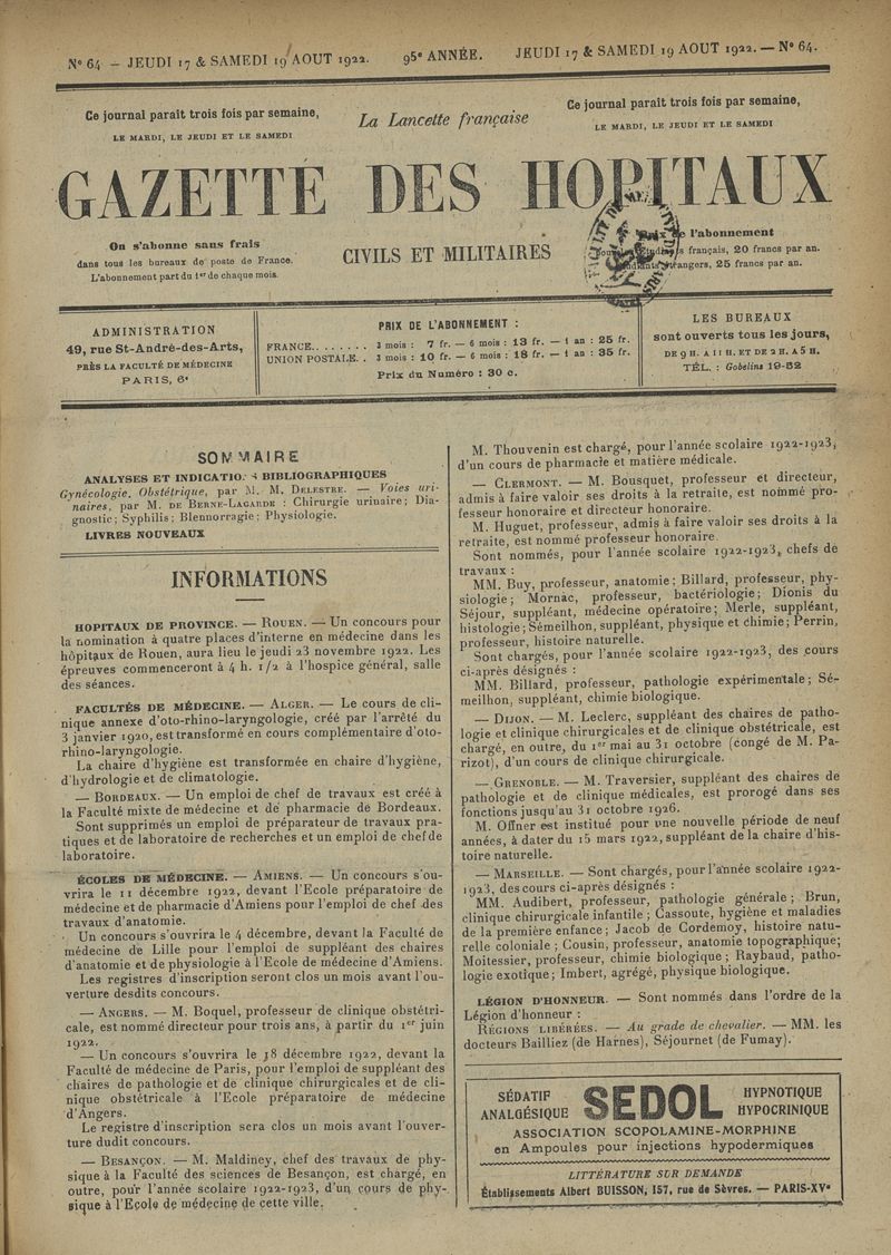 1922, tome 95e année. -