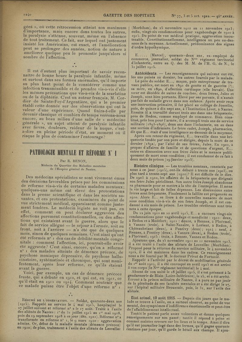 1922, tome 95e année. -