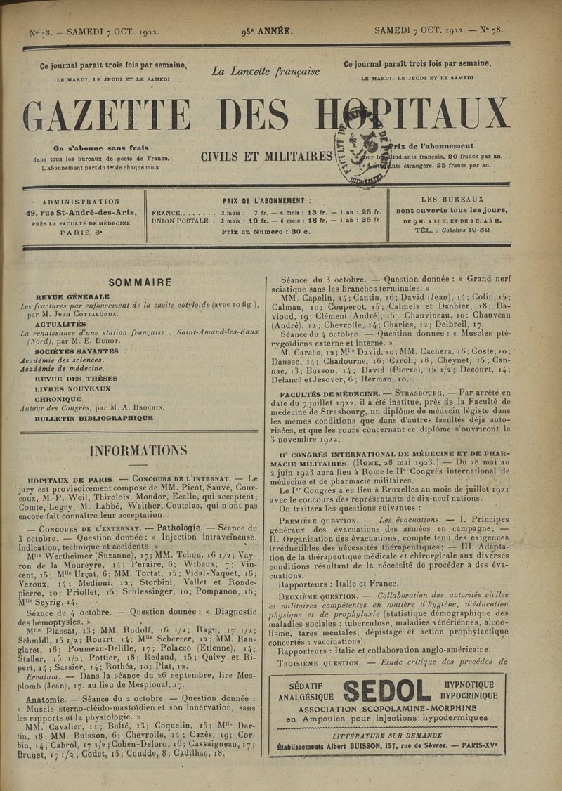 1922, tome 95e année. -