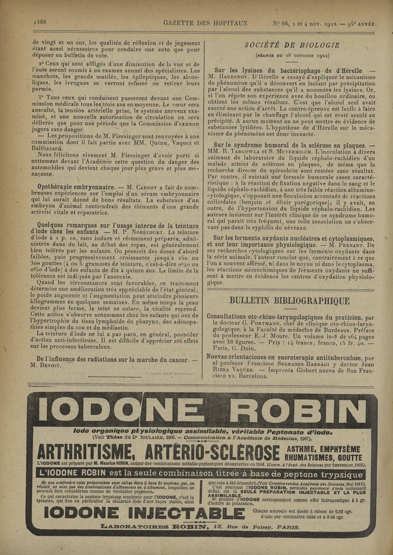 1922, tome 95e année. -