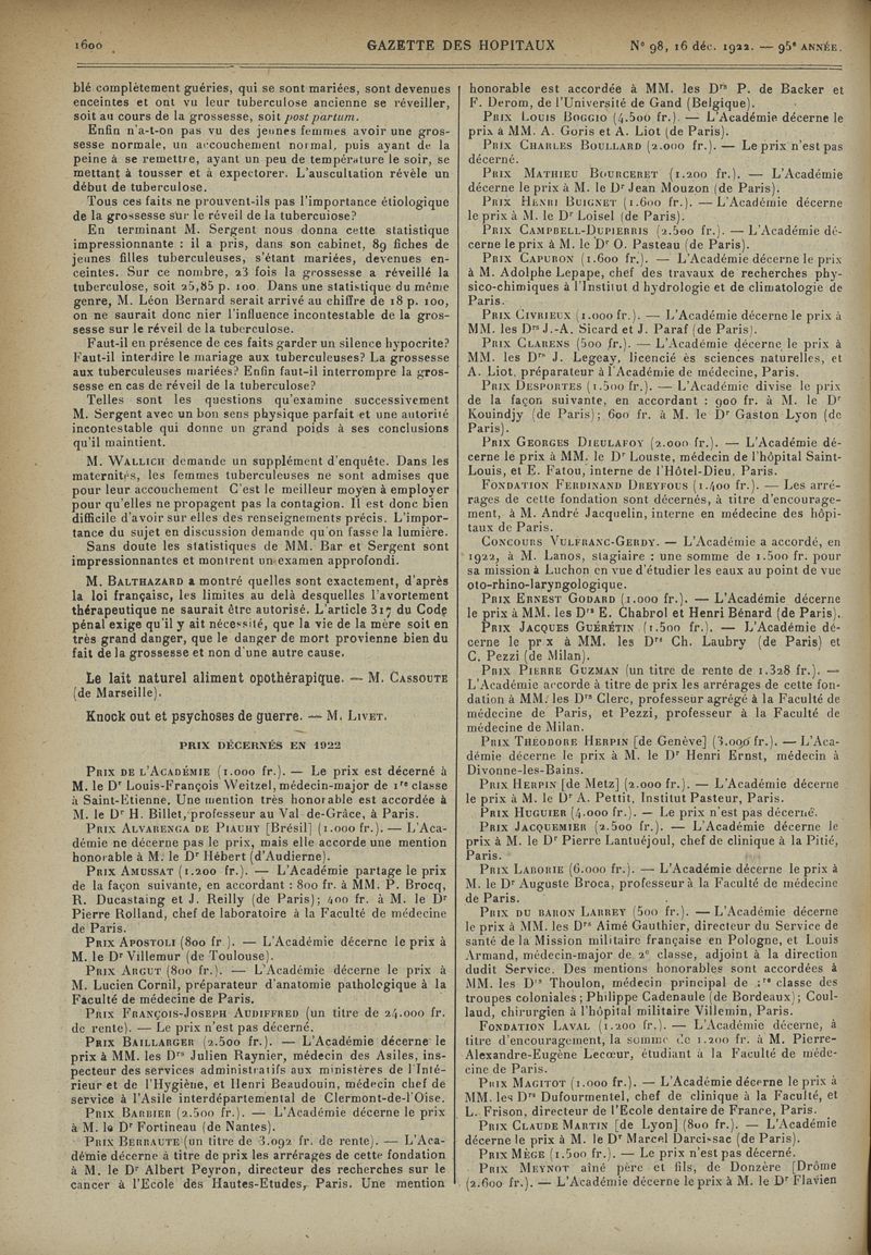 1922, tome 95e année. -