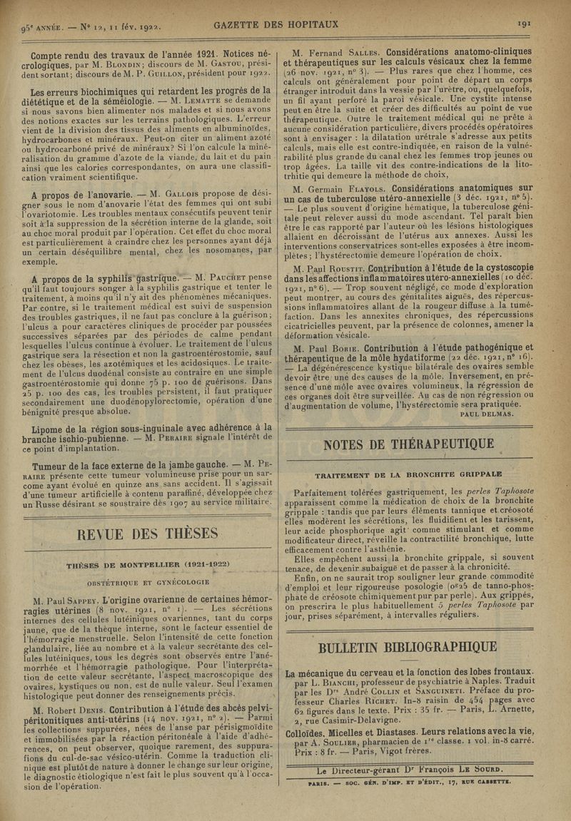 1922, tome 95e année. -