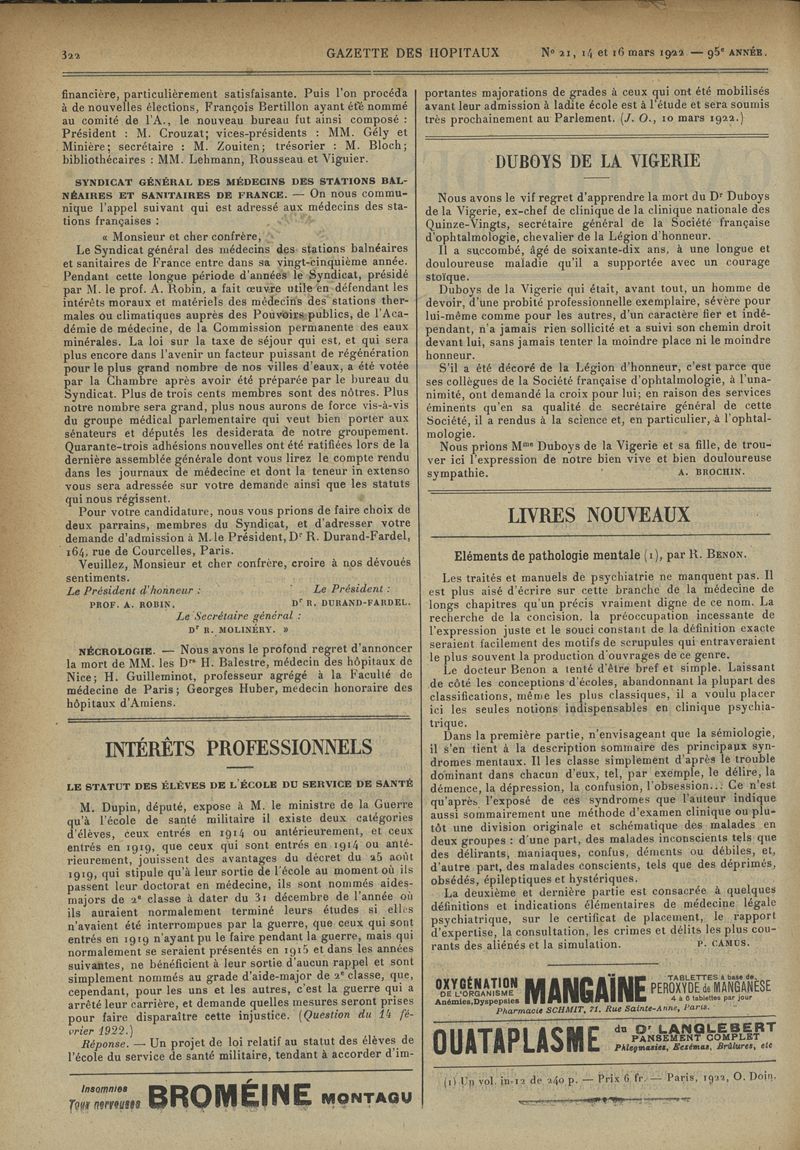 1922, tome 95e année. -