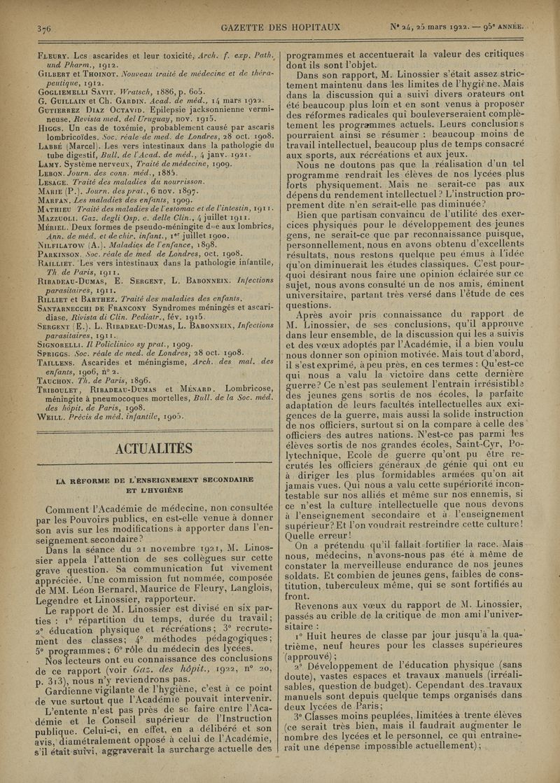1922, tome 95e année. -