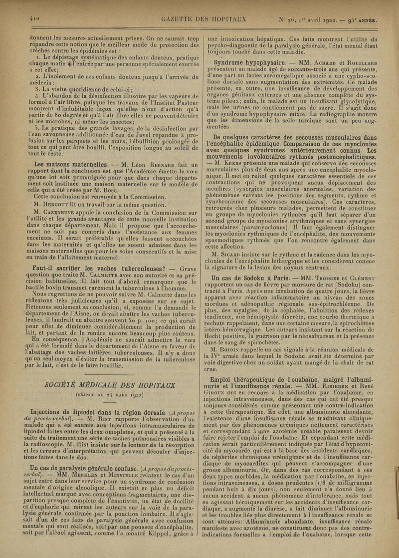 1922, tome 95e année. -