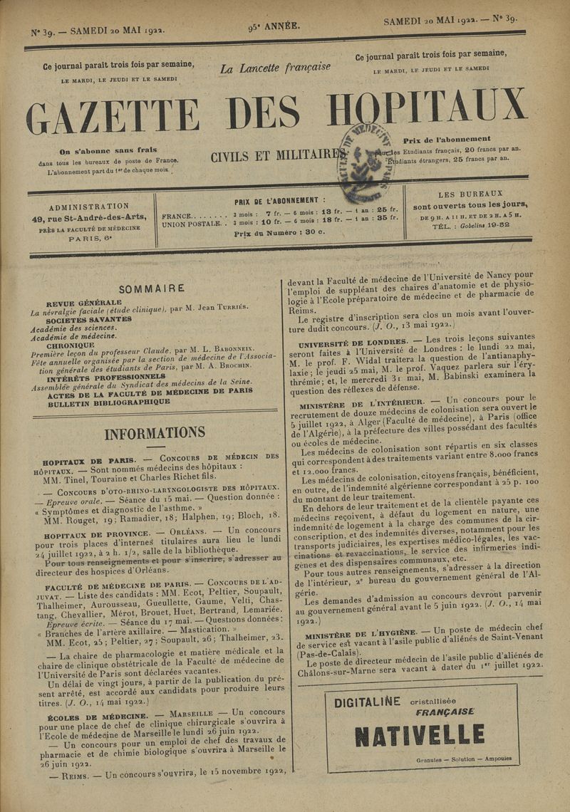1922, tome 95e année. -