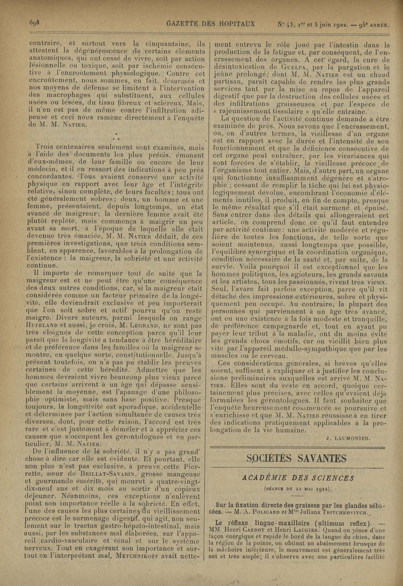 1922, tome 95e année. -