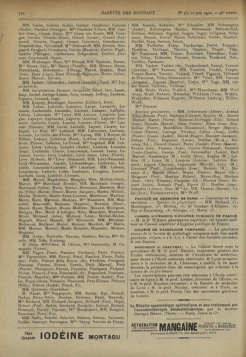 1922, tome 95e année. -