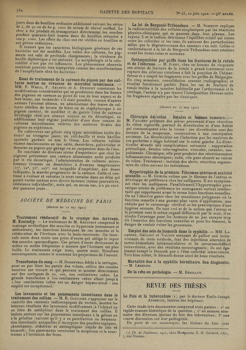 1922, tome 95e année. -