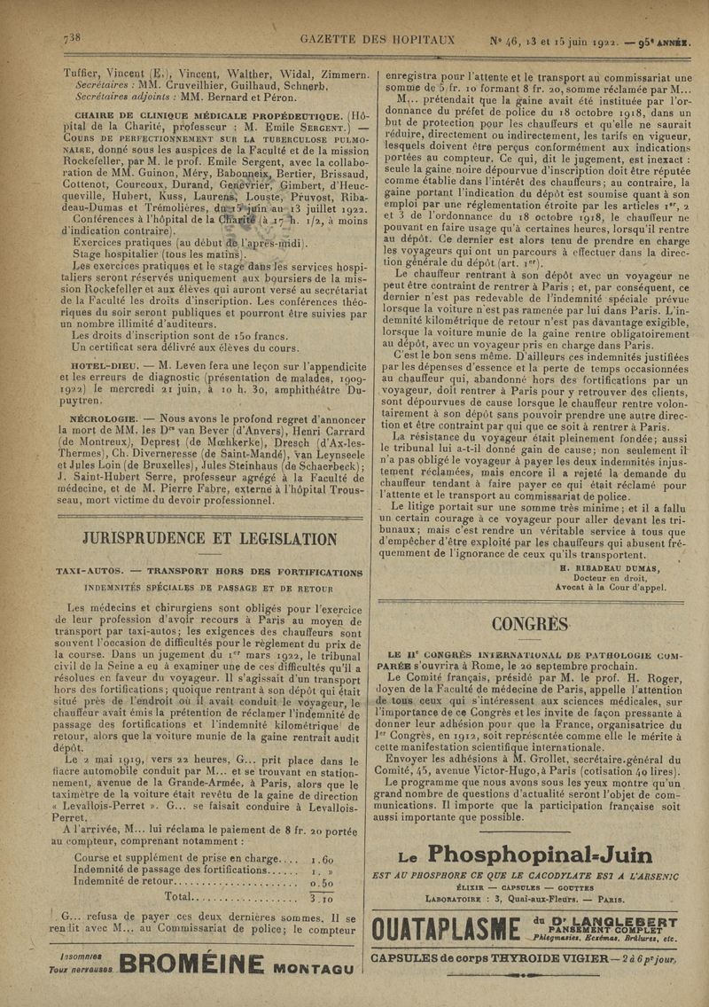 1922, tome 95e année. -
