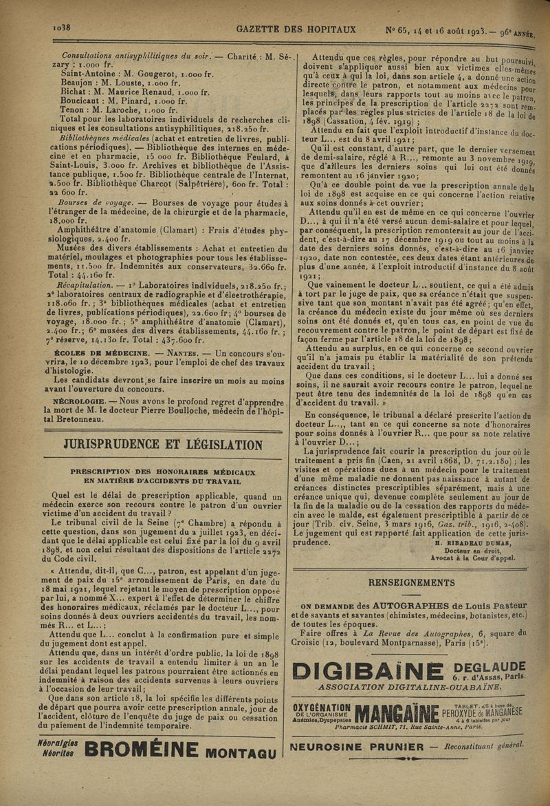1923, tome 96e année. -