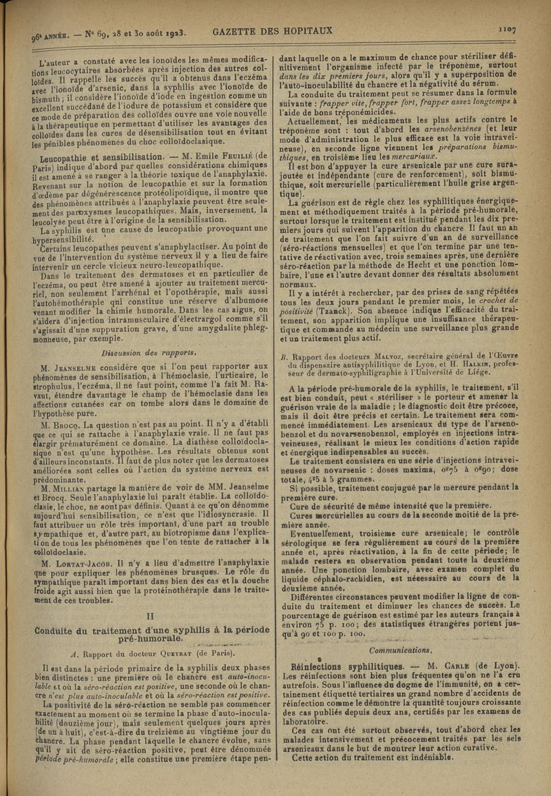 1923, tome 96e année. -