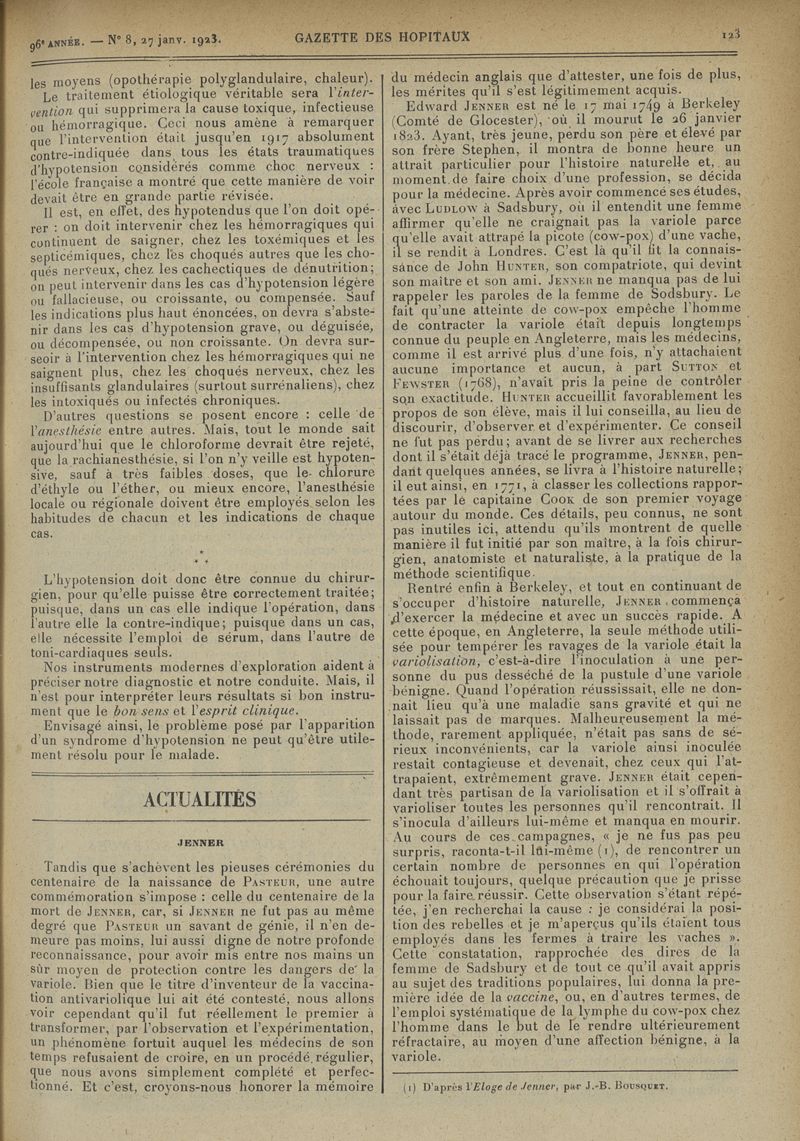 1923, tome 96e année. -