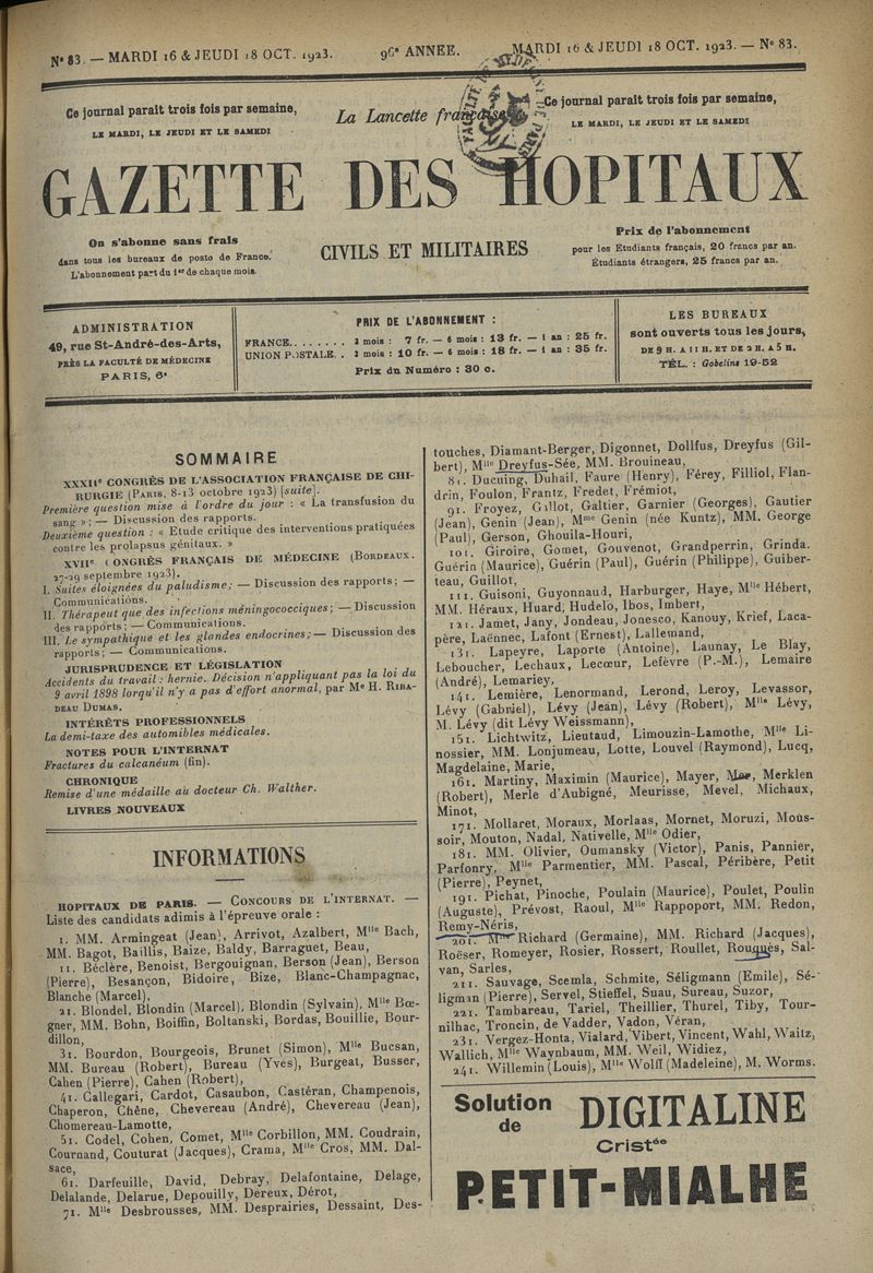 1923, tome 96e année. -