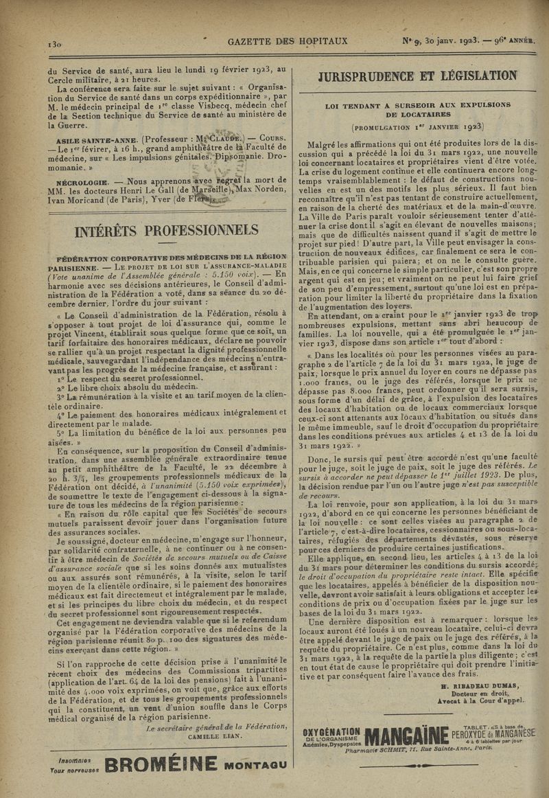 1923, tome 96e année. -