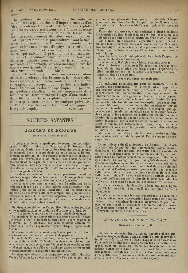 1923, tome 96e année. -