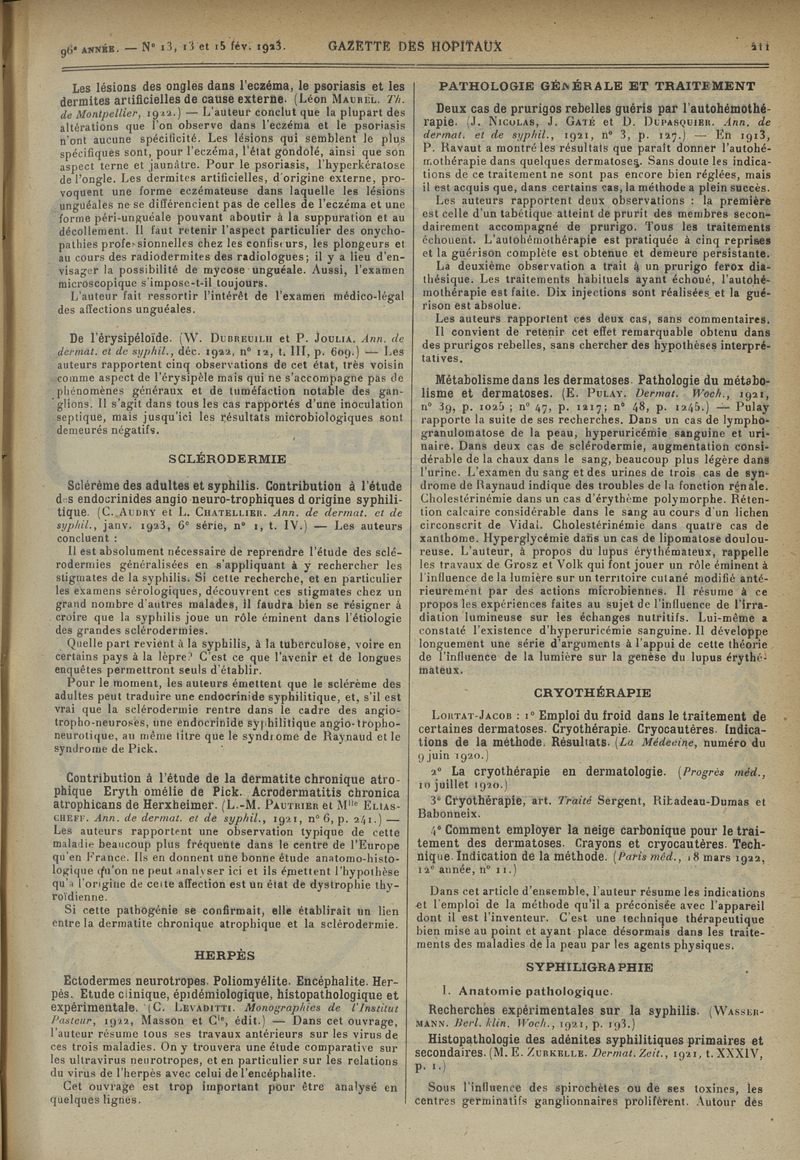 1923, tome 96e année. -