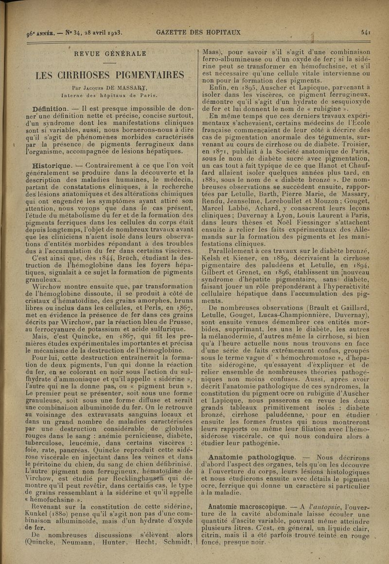 1923, tome 96e année. -