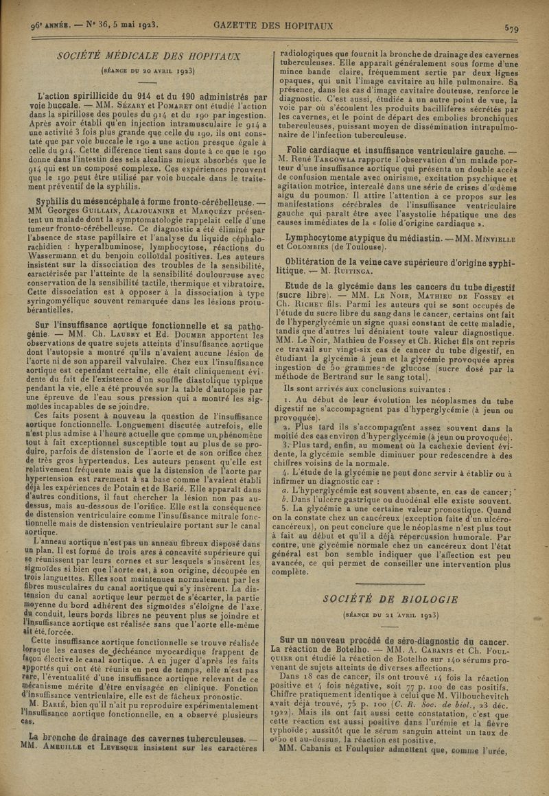 1923, tome 96e année. -