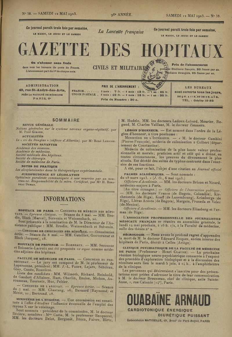 1923, tome 96e année. -
