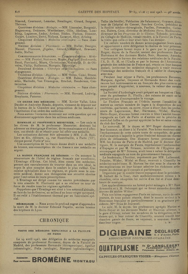 1923, tome 96e année. -