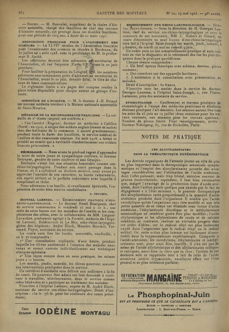 1923, tome 96e année. -