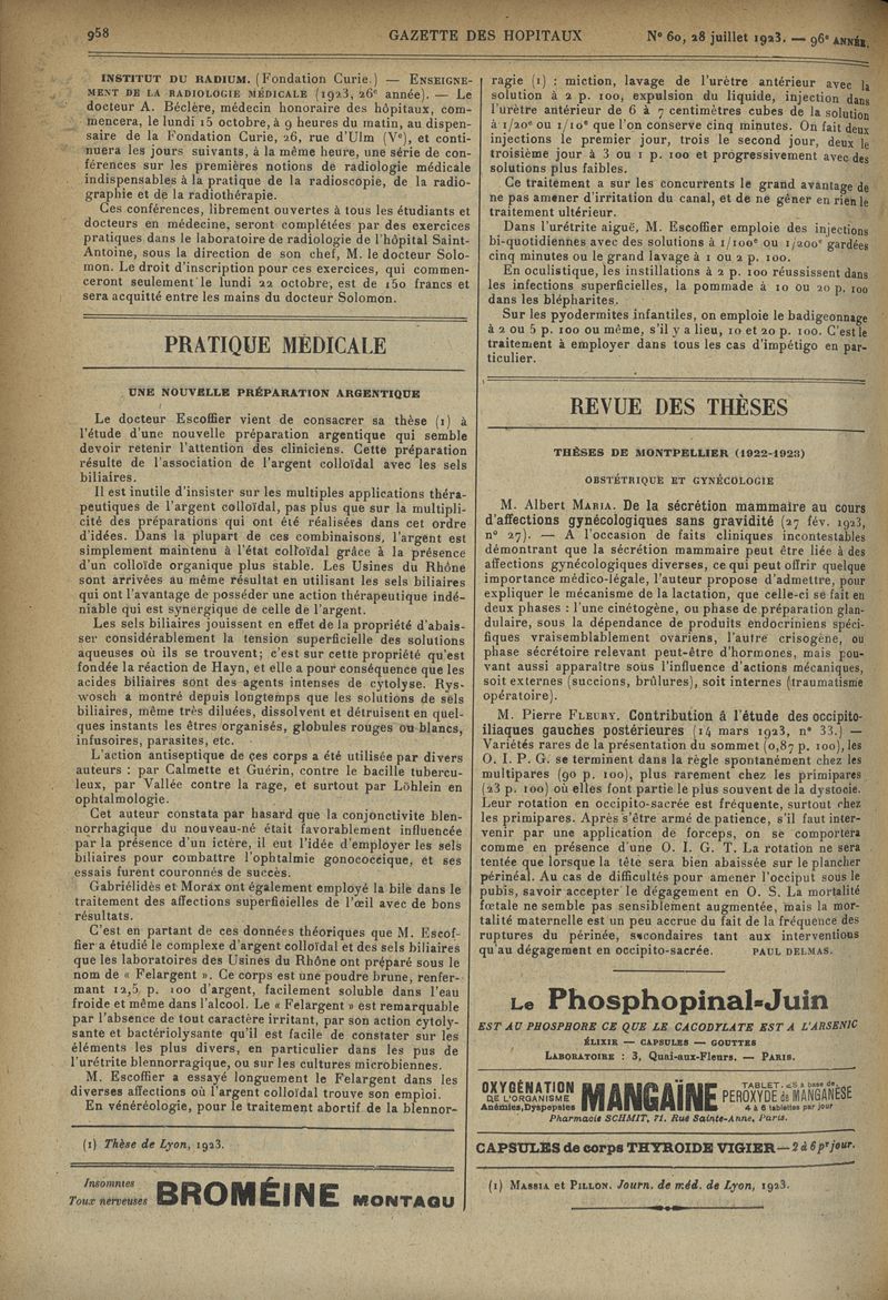 1923, tome 96e année. -