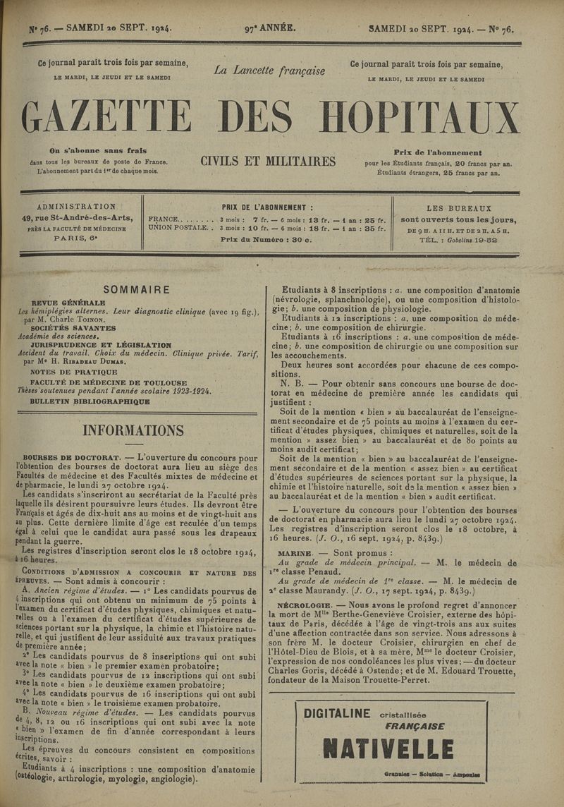 1924, tome 97e année. -