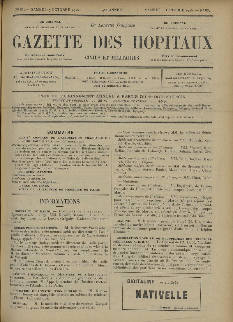 1925, tome 98e année. -