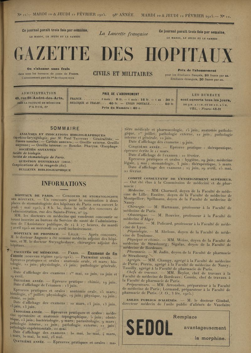1925, tome 98e année. -