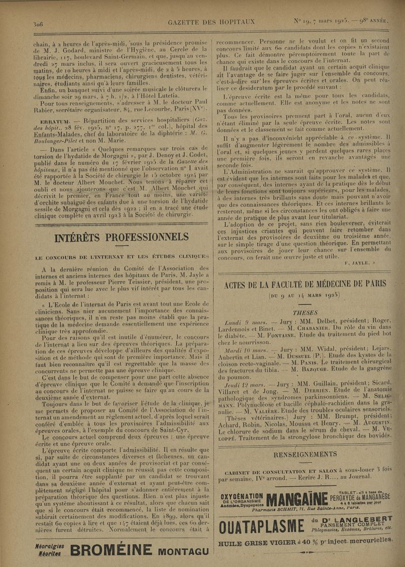1925, tome 98e année. -