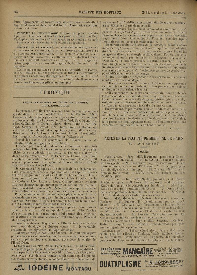 1925, tome 98e année. -