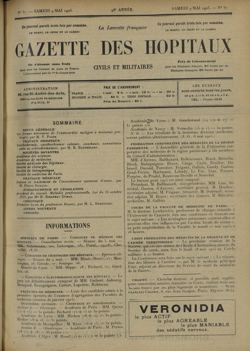 1925, tome 98e année. -