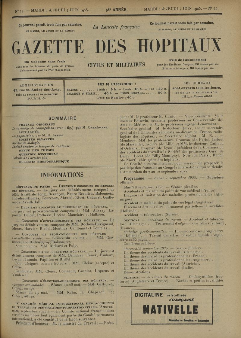 1925, tome 98e année. -